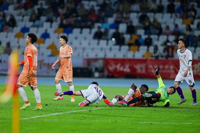 其中,大良隊(duì)在禁區(qū)外45度角的一記吊門是區(qū)志東印象最為深刻的一次撲救。“當(dāng)時(shí)也覺得有些困難,但還是拼盡全力去撲救,幸好最后確實(shí)撲到了。”區(qū)志東的飛身撲救雖成功化險(xiǎn)為夷,頭部卻在落地時(shí)撞到門柱,賽中左腳也不慎扭傷,現(xiàn)場醫(yī)護(hù)人員抬著擔(dān)架緊急入場,讓觀眾揪緊了心。